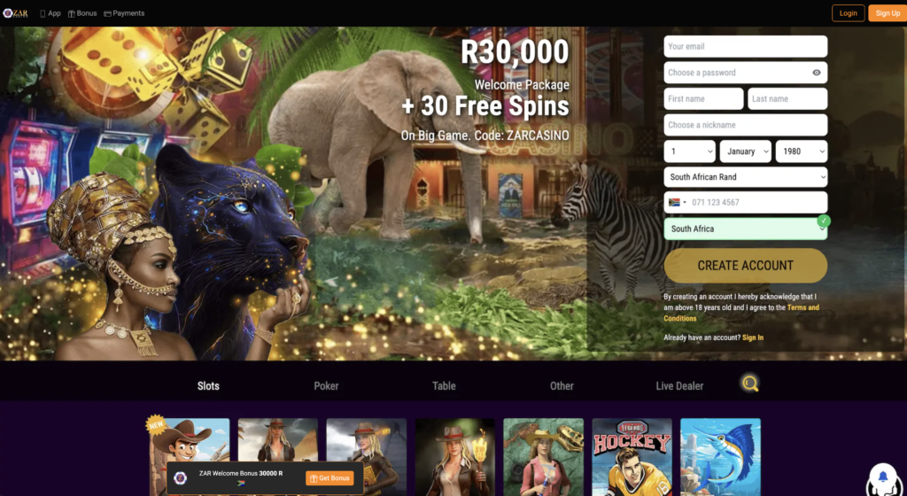 ZAR Casino is a top-rated South African online casino offering ZAR banking, fast payouts, and high-quality RTG games.