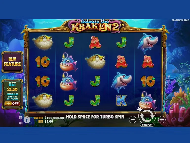 Release the Kraken 2 is the dramatic sequel to the popular slot from Pragmatic Play, launched in 2022. This online slot dives deeper into the dark, mysterious ocean, where the legendary Kraken guards immense riches. The game maintains the core 5×4 grid structure of the original but significantly upgrades the volatility and introduces several high-impact, randomly triggered base game features.