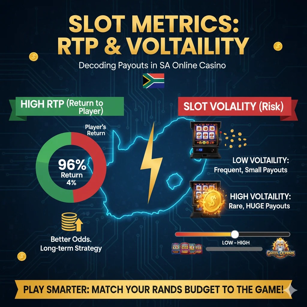 Unlock the math behind winning at SA Online Slots by mastering RTP (Return to Player) and Volatility (Variance)! This guide explains how to decode these crucial metrics: always choose high RTP (ideally 96% to minimize the house edge. Learn how Volatility dictates risk—using low volatility slots for clearing bonuses and accepting high volatility (like Gates of Olympus or Megaways Slots) only when chasing massive jackpots. Use this knowledge to make informed Rands budgeting decisions.